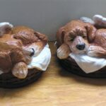 These items are hand painted to closely resemble your pet. Please send or e-mail us some pictures of your pet companion and our artists will create a one of a kind memorial urn according to your instructions. Painting is applied to an urn made of resin with a felted bottom to protect furniture. The urn is buttom loaded with a two inch snap-in security plug.
