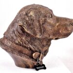 This highly detailed portrait of a Labrador Retriever Dog was created by an award-winning American artist and will make a wonderful tribute to your beloved friend. It is cast by the “cold-cast” (polymer resin/black pigment mixture) technique and hand-finished with bronze patina. The Lab bust sculpture comes with a Walnut finished hardwood urn box. The unique feature of this piece, that it is giving the customers a chance of using their existing Name Tag by attaching it to the Lab’s collar. A two jump-ring attachment is provided.