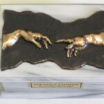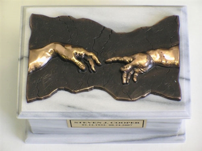 Inspired by Michelangelo’s design beautifully cast pewter plaque with Bronze plating on top of a White Marble Urn.