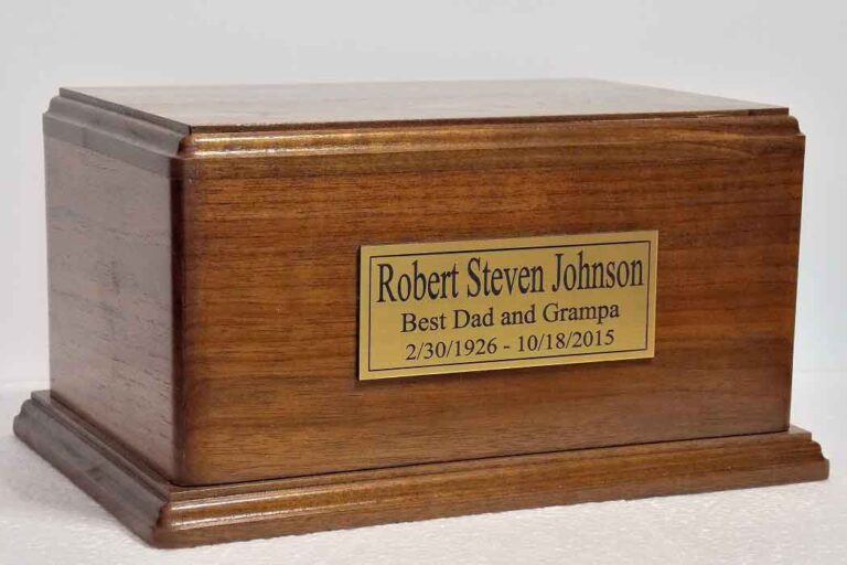 This Traditional Walnut Urn is designed to reflect the beauty of genuine American walnut wood. The removable bottom panel secures with included screws. Made in the USA.